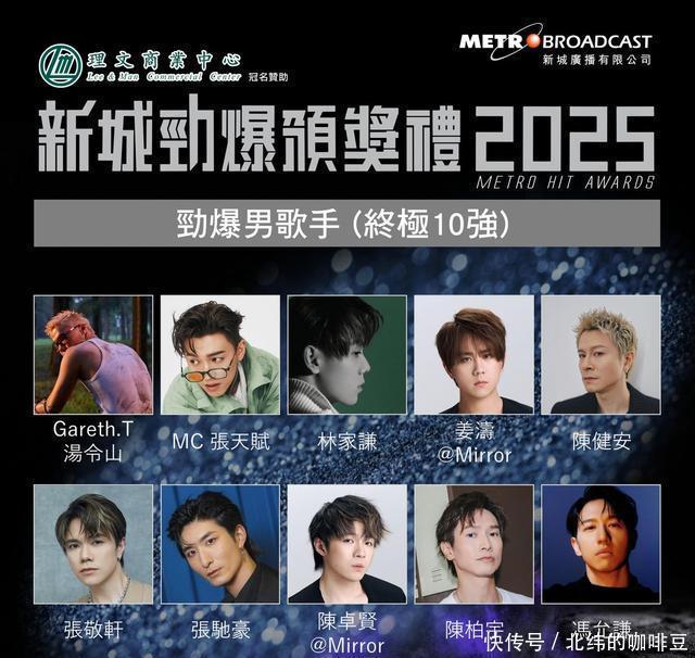 张敬轩硬撼新生代男歌手 新城劲爆男歌手(终极10强)名单包括"轩公"张敬轩、MC张天赋、Gareth.T汤令山、林家谦、姜涛、陈健安、Aska张驰豪、Lan陈卓贤、陈柏宇及冯允谦。作为前辈的张敬轩与一众后辈如MC张天赋、姜涛、陈卓贤、林家谦及冯允谦等“正面交锋”,单看牌面已觉激烈,而男团Mirror分别两位成员入选,分别为姜涛和陈卓贤。